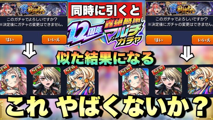 #モンスト #ガチャ 轟絶マルチ感謝ガチャで同じタイミングで引くと似た結果になるらしい