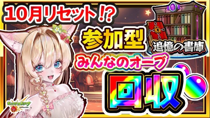 #モンスト #参加型 #初見歓迎 #お手伝い #モンストLIVE #書庫リセット 🎀【モンスト参加型LIVE】追憶の書庫オーブ回収🎀 🔥10月にリセットされるかも!? 今のうちに *みんなのオーブ* を回収しよう💎 周年ガチャに向けて「追憶の書庫」を一緒にクリアする参加型配信です✨ 【参加用ROOM】 🍓 […]